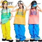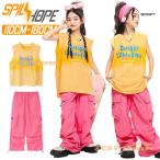 黄色 ピンク タンクトップ カーゴパンツ タイダイ キッズ ダンス衣装 女の子 男の子 ノースリーブ セットアップ 上下セット トップス パンツ ヒップホップ ジャ