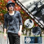 【閉店セール】ムラ染めUネック七分袖カットソー+ロング丈タンクトップセット メンズカットソー タンクトップ 七分袖 ムラ染め タイダイ染め Uネック