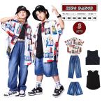 柄 シャツ 半袖 タイダイ デニムパンツ ブルー ワイドパンツ タンクトップ 白 キッズ ダンス衣装 ダンスウェア チアガール かっこいい 子供服セット 男の子女の子 韓国 発表会 個性派 ストリート 応援団 演出服 ヒップホップ キッズダンス 衣装
