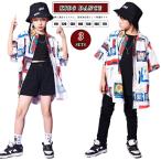 柄シャツ タイダイ柄 総柄 キッズ ダンス衣装 女の子 男の子 ノースリーブ タンクトップ 半袖 シャツ カジュアルシャツ トップス 迷彩柄パンツ ギャル系 ジャズ