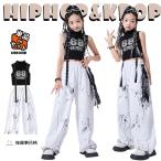 黒 白 タイダイ柄 へそ出し キッズ ダンス衣装 セットアップ こども 子供 カジュアル タンクトップ カジュアルパンツ ロングパンツ ジャズダンス ヒップホップ
