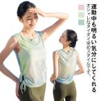 フィットネスウェア サイドドローストリング ランニングウェア 運動着 トップス レディース ノースリーブ タンクトップ 細身 タイダイ染め Tシャツ スポーツウェア トレーニング ダイエット S M ヨガウェア