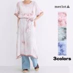 merlot メルロー タイダイ染め生地の半袖ワンピース レディース フリーサイズ レース レーヨン タイダイ ワンピース ワンピ エスニック (メール便送料無料20)