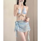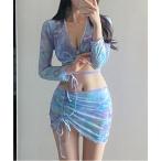 水着 タイダイ柄シースルー長袖トップス+スカート+ハイウエストビキニ 水着 4点セット レディース