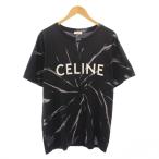 セリーヌ CELINE Loose TEE ルーズTシャツ 半袖 クルーネック ストレッチ ロゴ プリント タイダイ柄 XS 黒 ブラック グレー 2X8206430