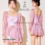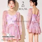 水着 夏 レディース ワンピース 春 体型カバー タイダイ フリル ワンピース 春水着 M L 2L 20代 30代 可愛い