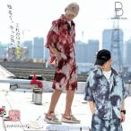 メンズ セットアップ 上下セット アロハ タイダイ 柄 半袖シャツ ショーツ ショートパンツ ハーフパンツ サマーセット ボタンダウン パンツ ハワイ