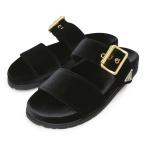 (新品・未使用品)PRADA プラダ 1XX715 スライドサンダル ベルベット ブラック サンダル 靴 トライアングル ロゴ #35 22cm アンティークゴールド金具 箱付