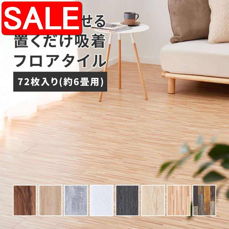【スーパーSALE 68%OFF!】 置くだけ 木目調 フロアタイル 72枚入り 約6畳分 貼ってはがせる 吸着タイプ 接着剤不要 敷くだけ ウッド調 賃貸 DIY 萩原 北海道追加送料 沖縄 離島別途送料見積もり maru-81955960x