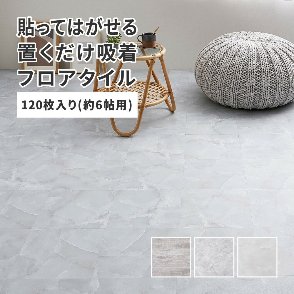 【30日★5%OFFクーポン】 貼ってはがせる 大理石調 フロアタイル 120枚入り (約6畳用) 【送料無料】 フロアタイル 賃貸 敷くだけ 置くだけ 6畳 フローリング リビング 玄関 大理石 吸着 粘着 ストーン調 滑り止め 白