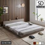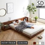 Platform Bed ローベッド セミダブル ナイトテーブルLR(左右) 棚付きコンセント2口 木製ベッド フロアベッド ステージベッド すのこ