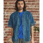 シャツ メッシュタイル柄プリントオープンカラーシ メンズ