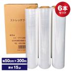 ストレッチフィルム 15μ 〔6本入〕 500mm*300M 15ミクロン 3インチ 梱包ラップ 手巻き 荷崩れ防止 汚れ防止 梱包用フィルム タイ製