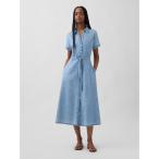 ワンピース デニム ウエストタイ ミディシャツワンピース