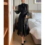 ワンピース ラッフルフリルリボンタイロングワンピース