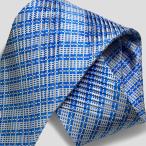 【ステファノリッチ】ネクタイ |シルク プリーツタイ ブルー ホワイト 幾何学柄 (ste01015)