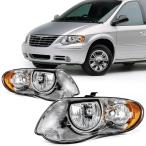 【並行輸入品】クライスラータウン&カントリーOE交換用クロムベゼルヘッドライトドライバー/助手席ヘッドランプペア新品 AKKON For 2