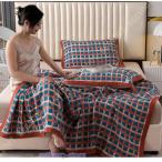 チェック柄 かわいい タオルケット ダブル 天然綿100% 洗える 夏用 北欧風 ブランケット ガーゼ生地 たおるけっと 肌触りがいい 冷房対策 四季適用