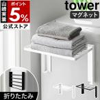 山崎実業 公式 tower 使いやすい高さに開くマグネット洗濯機横折り畳み棚 タワー タオルラック 折り畳み 脱衣所 タオル収納 洗濯機ラック ランドリー マグネット