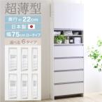 ランドリー収納 ラック スリム 薄型 ハイタイプ 幅75 奥行20 フラップ タオル 洗面所 収納 突っ張り 爆買