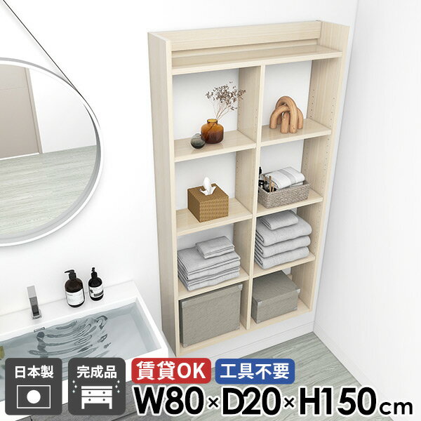 トイレ棚 石膏ボード ディスプレイ棚 ウォールラック 賃貸 ウォールシェルフ 吊戸棚 洗面所 5段 洗面所棚 おしゃれ 本棚 オープンシェルフ 奥行20cm 脱衣所 壁面 タオルラック トイレ 食器棚 鏡面 壁面収納 木目 幅80cm 高さ150cm 【MiraiウォールラックH/8020150/ww】 ☆