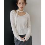 tシャツ 「UNE ORIGINAL」マフラー&ウォーマースリムサイドシャーリングUネックタオルミックス素材カットソーSET レディース