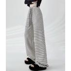 パンツ 軽やかなタオル生地ボーダーワイドパンツ レディース