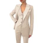 【並行輸入品】LIBODU レディース パンツスーツ ウェディング タキシード パーティーウェア スーツ フォーマル ビジネススーツ, ベージュ