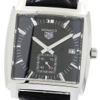 《メンズ》【中古】タグホイヤー モナコ キャリバー6 デイト 自動巻き オートマ WW2110 WW2110.FC6177 メンズ 黒文字盤 TAGHEUER MONACO タグ・ホイヤー 保証書付き