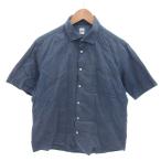 タケオキクチ TAKEO KIKUCHI シャツ リネン混 麻 ストレッチ 2 青 ブルー 半袖 ボーダー柄 /AH38 ■GY58 メンズ