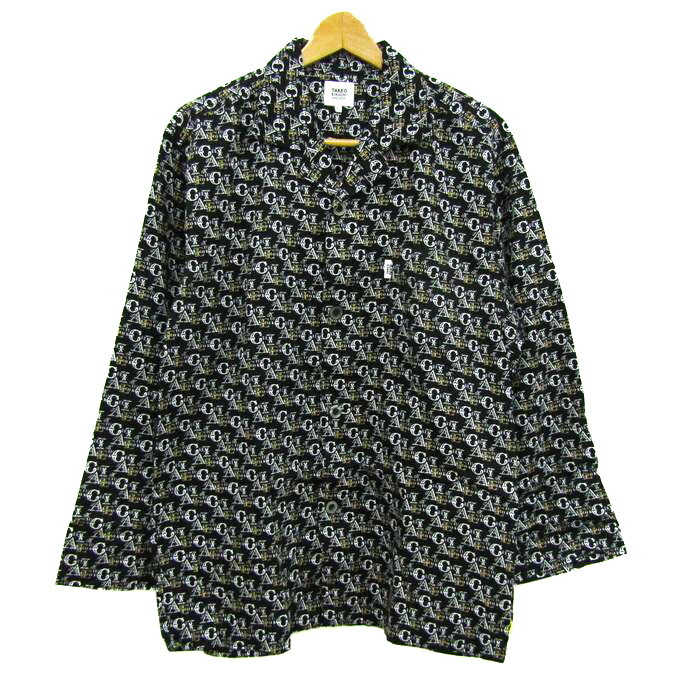 TAKEO KIKUCHI タケオキクチ 長袖シャツ トップス ロゴグラム柄 ホームウエア 日本製 メンズ Lサイズ ブラック 【中古】