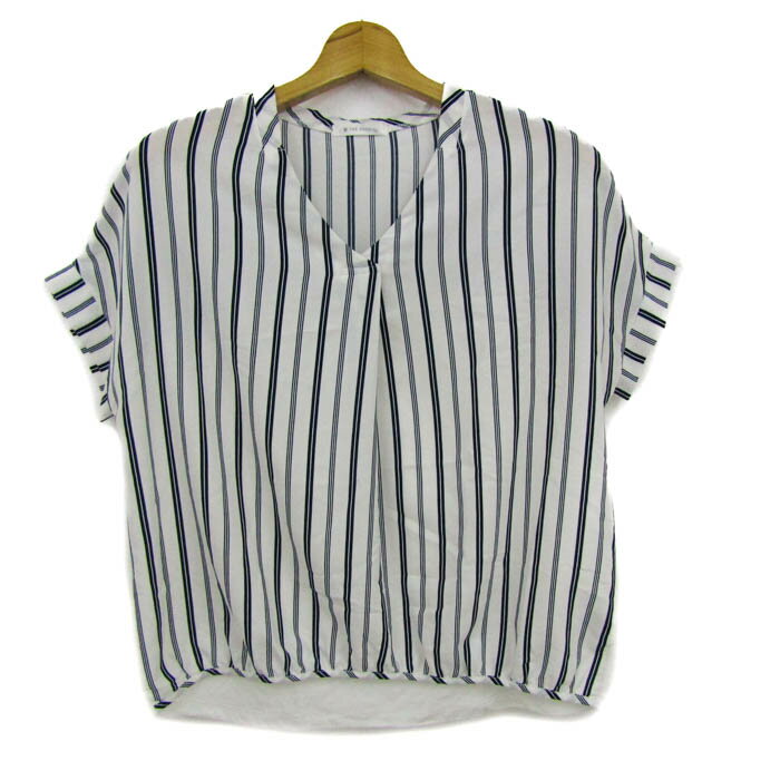 ザショップティーケー ブラウス シャツ 半袖 ストライプ柄 プルオーバー タケオキクチ レディース Sサイズ 白×紺 THE SHOP TK 【中古】