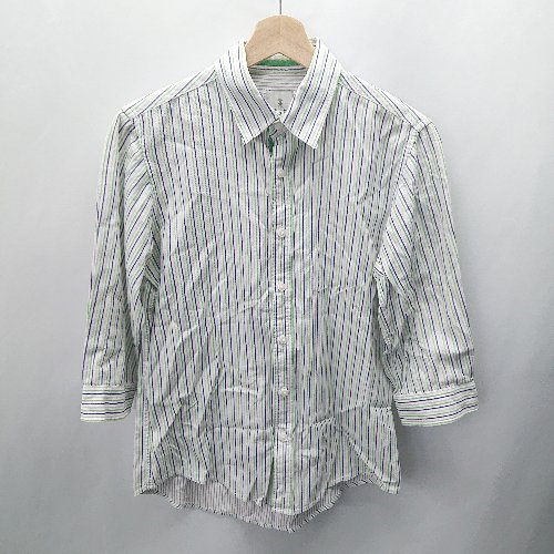 ◇ tk.TAKEO KIKUCHI ティーケー タケオキクチ ストライプ柄 七分袖 シャツ サイズ3 グリーン系 レディース E 【中古】