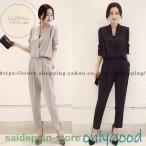 セットアップ スーツ レディース カジュアル パンツスーツ ワイドパンツ 大きいサイズ 通勤 オフィス 秋