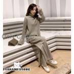 ニット セットアップ レディース 秋 冬 パンツ ワイドパンツ セットアップ タートルネックニット 20代 30代 40代 きれいめ 白