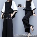かっこいい パンツドレス セットアップ レディース きれいめ パーティードレス 結婚式 お呼ばれドレス ケープスリーブ 袖あり 大きいサイズ 3L 4L 韓国