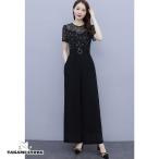 オールインワン レース パンツ ロング丈 ワイドパンツ ガウチョ ノースリーブ 韓国 パーティー 結婚式 パンツドレス