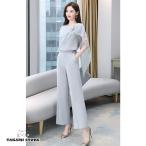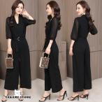 かっこいい パンツドレス セットアップ レディース パーティードレス 結婚式 お呼ばれドレス パンツ シースルー 大きいサイズ 3L 4L 韓国 黒 フリル襟