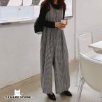 オールインワン サロペット レディース パンツ 大きいサイズ ギンガムチェック ワイドパンツ オーバーオール ゆったり 韓国 秋