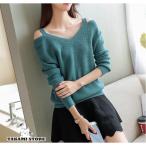 レディース トップス ニット 長袖 Vネック 肩出し 大きいサイズ ゆったり きれいめ シンプル 着痩せ オフィス 韓国 ファッション 秋 全5色