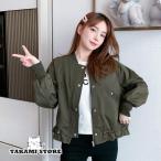 ブルゾン アウター レディース 秋 ノーカラージャケット ドローストリング ショート丈 MA-1 大きいサイズ 大人可愛い ミリタリージャケット