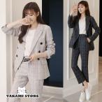 パンツスーツ セットアップ レディース おしゃれ きれいめ カジュアル チェック スーツ セット カジュアルスーツ 大きいサイズ オフィス 通勤服 韓国