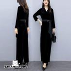 パンツドレス ドレス 結婚式 お呼ばれ パンツ ワイドパンツ セットアップ 韓国 パーティードレス 長袖 袖あり 黒 ゆったり 体型カバー 大きいサイズ