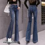デニムパンツ レディース ボトムス フレアデニム パンツ ハイウエストデニム フレアパンツ デニム ジーンズ ジーパン カジュアル 大人可愛い 韓国