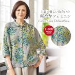 日本製 ブラウス レディース おしゃれ ミセス シニア ファッション 50代 60代 70代 80代 綿麻プリントドルマンブラウス 百貨店販売商品◎