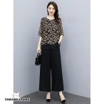 セットアップ レディース きれいめ かっこいい パンツドレス 結婚式 お呼ばれドレス パンツ 大きいサイズ 3L 4L 50代 40代 30代 柄シャツ リーフ柄 蝶々柄
