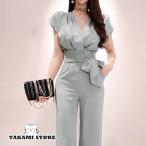 かっこいいパンツドレス パーティードレス パンツ セパレート 結婚式 セットアップ パンツドレス 大きいサイズ 袖あり ウエストリボン カシュクール