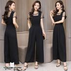 パンツドレス 大きいサイズ 3L オールインワン レディース 半袖 ワイドパンツ かっこいいパンツドレス パーティードレス 黒 レース 結婚式 二次会 お呼ばれ
