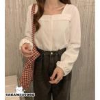スクエアネック ブラウス レディース 長袖 トップス 春 秋 シャツブラウス 白ブラウス きれいめ カジュアル 通勤服 オフィス 白 大人可愛い 上品