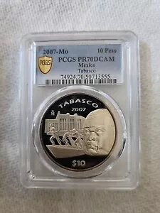 2007 メキシコ シルバー 10 ペソ S10P エスタード デ タバスコ PCGS PF 70 のみ 2 グレード レア